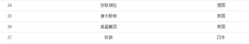 2021年 福布斯全球企业2000强 安联集团位列榜单24位