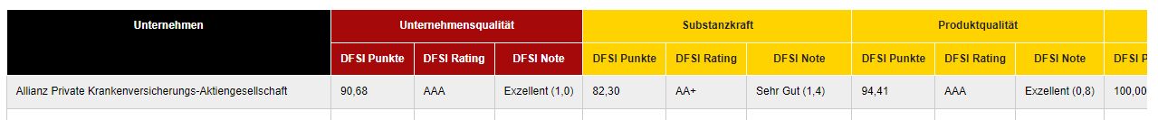 DFSI Ratings GmbH评级公司评估了2022/2023年私人健康保险公司的质量,分析检查了31家健康保险公司,最终在综合评分中,安联是唯一一家获得“Exzellent(优秀)”评价的健康保险公司。—— 德国保险日报