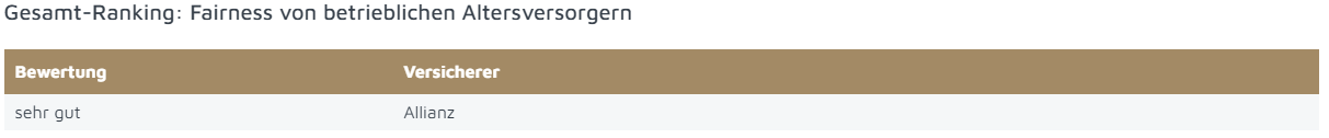公司养老保险的一种)。安联保险在五项中的四项里获得了 “exzellent”(优秀)最好的评价。—— versicherungsbote.de